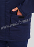 Костюм рабочий утепленный мужской состоит из куртки и полукомбинезона. Куртка удлиненная с воротником стойкой, прямого силуэта с застежкой на тракторную молнию с ветрозащитным клапаном на липучках "Velcro". На куртке два нагрудных и два нижних накладных кармана с клапанами и застежками на липучку "Velcro". Капюшон съёмный, на молнии ,с возможностью регулировки объема по лицевой части. Полукомбинезон прямого силуэта, с застежкой на две пуговицы и молнию. На брюках два передних кармана с косой линией входа. Однослойное утепление брюк объемом 200 гр/кв.м.
